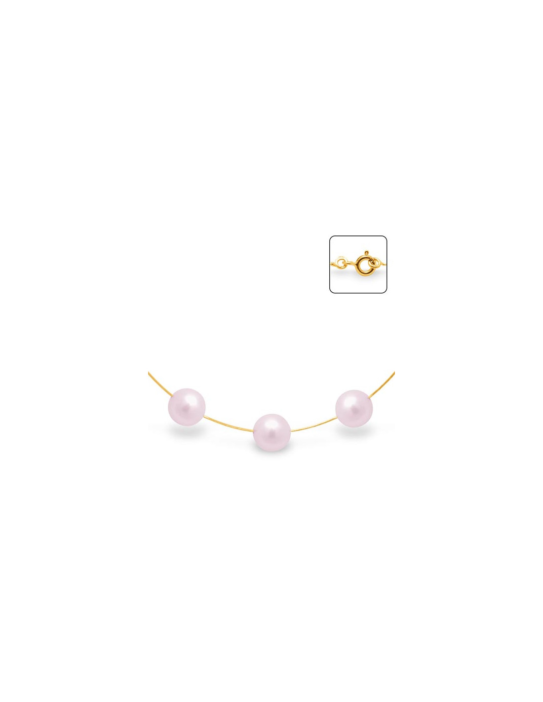 Collier 3 Perles de Culture d'Eau Douce Rondes - Câble Or 750 Millièmes