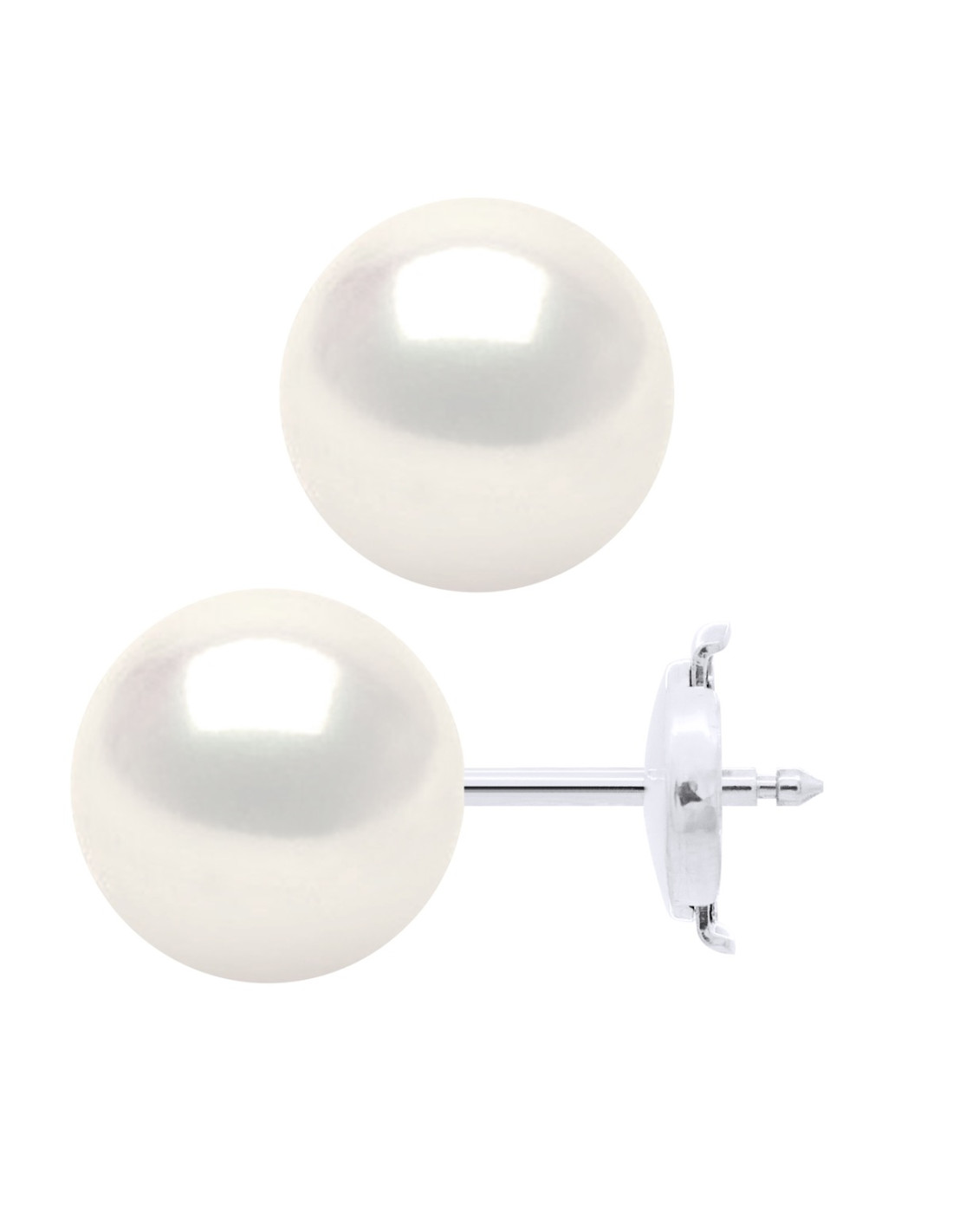 Boucles d'Oreilles Perle de Culture d'Eau Douce Ronde Or 750 Millièmes Système Poussettes Sécurité