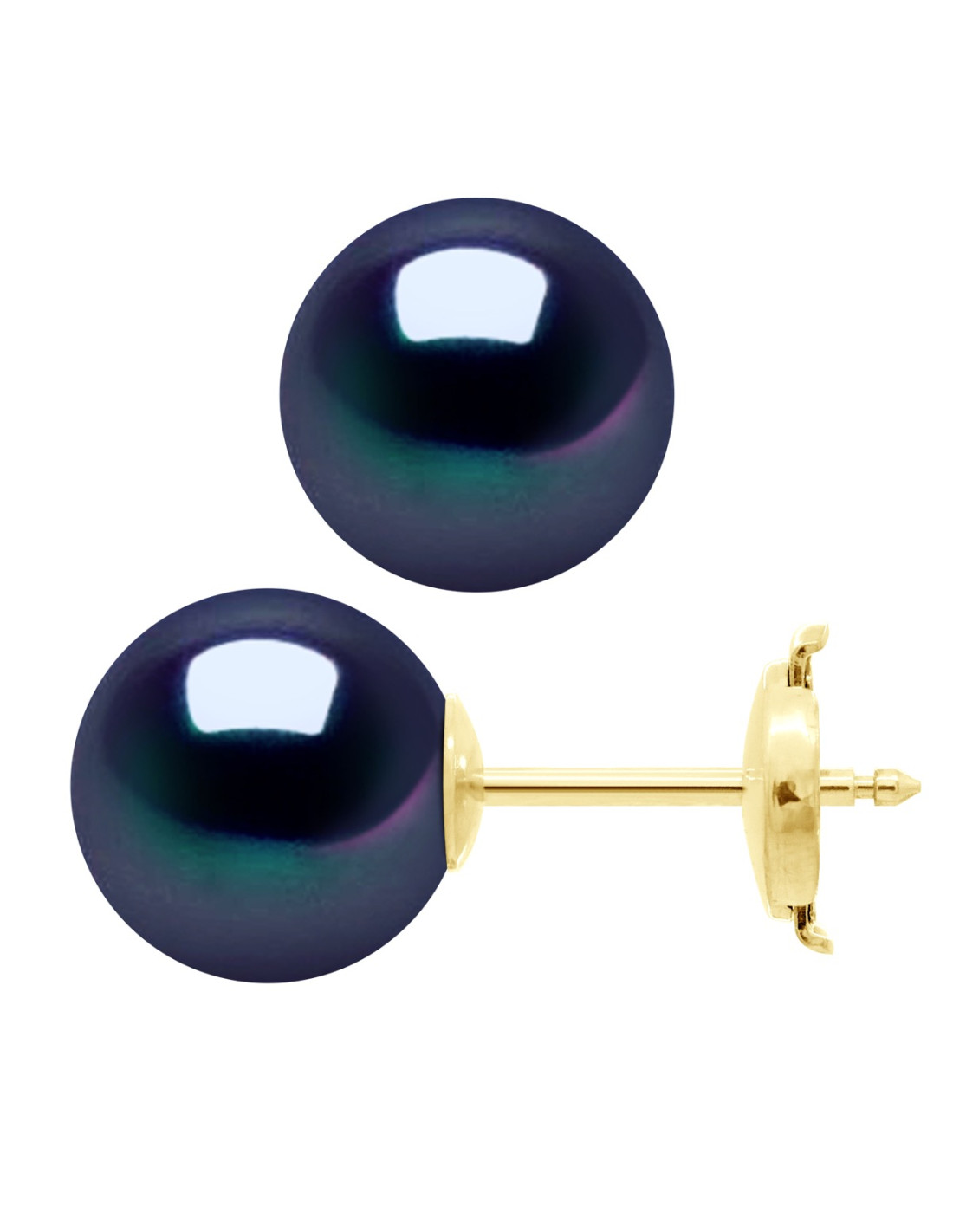 Boucles d'Oreilles Perle de Culture d'Eau Douce Ronde Or 750 Millièmes Système Poussettes Sécurité