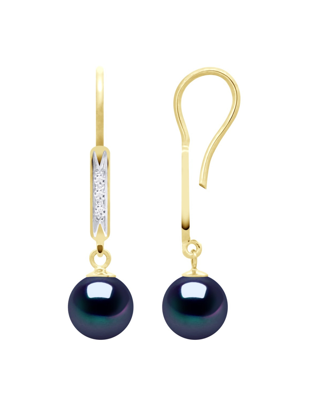 Boucles d'Oreilles Perle de Culture d'Eau Douce Ronde 9-10 mm  Or 750 Millièmes Système Poussettes