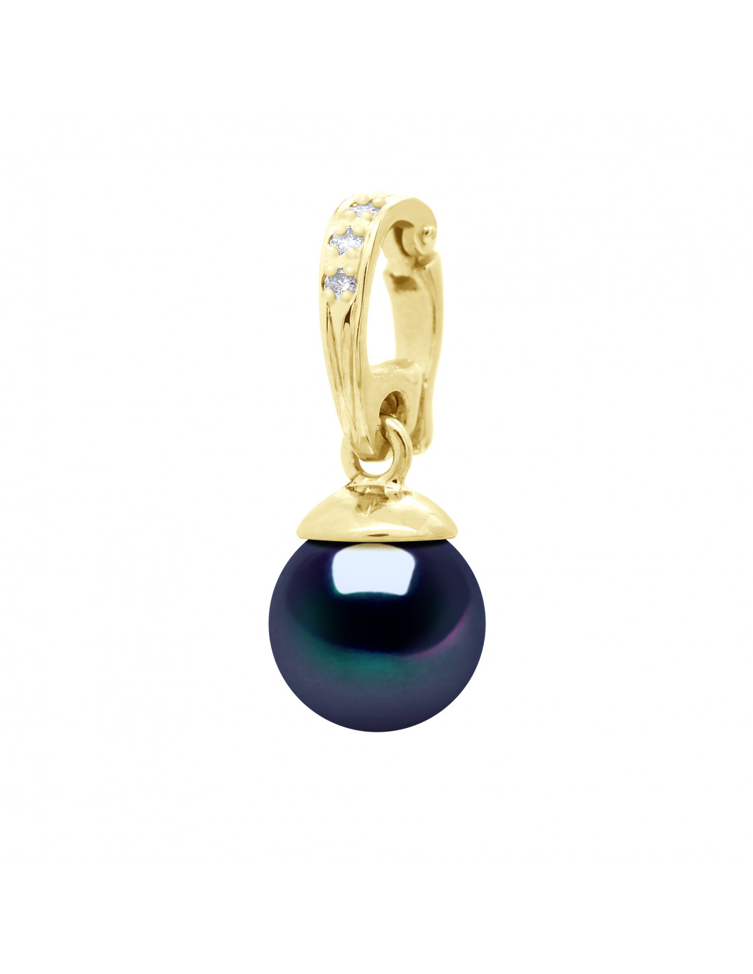 Pendentif Véritable Perle de Culture d'Eau Douce Ronde 8-9 mm et Diamant 0,030 cts HSI en Or 750 Millièmes