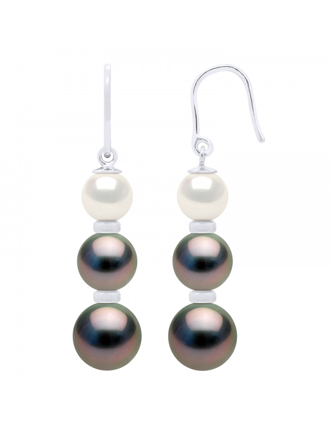Boucles d'Oreilles Perles de Culture d'Eau Douce et de Tahiti Ronde - Or 750 Millièmes Système Crochet
