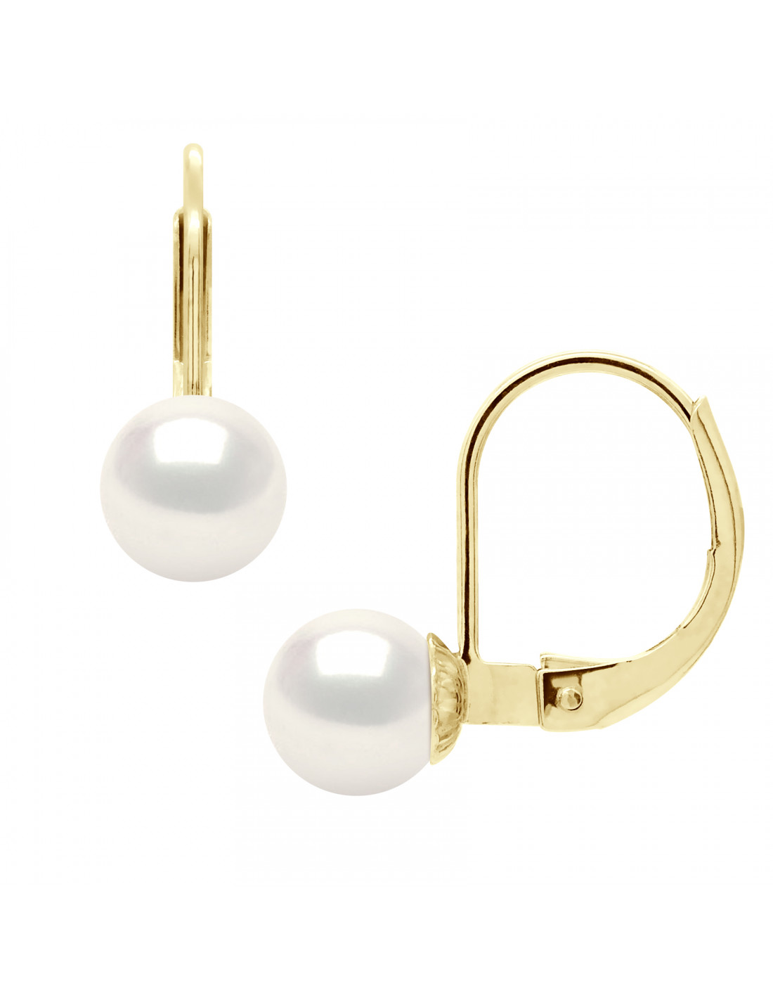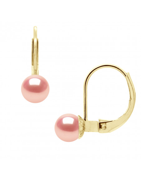 Boucles d'Oreilles Perle de Culture d'Eau Douce Ronde Or 375 Millièmes