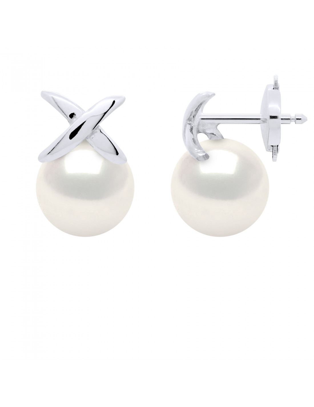 Boucles d'Oreilles Perle de Culture d'Eau Douce Ronde 8-9 mm Or 375 Millièmes