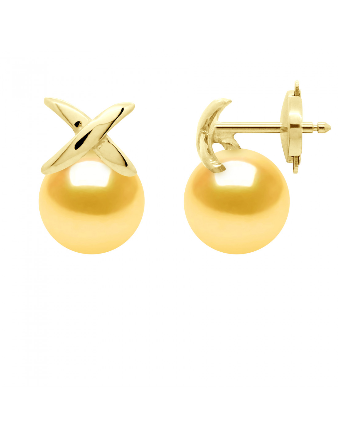 Boucles d'Oreilles Perle de Culture d'Eau Douce Ronde 8-9 mm Or 375 Millièmes