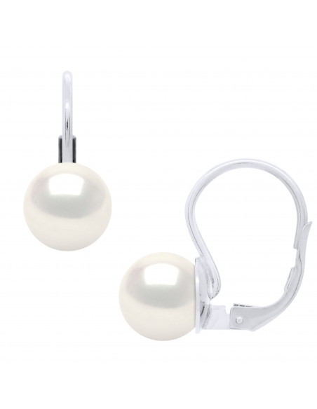 Boucles d'Oreilles Perle de Culture d'Eau Douce Ronde Or 750 Millièmes Système Dormeuse