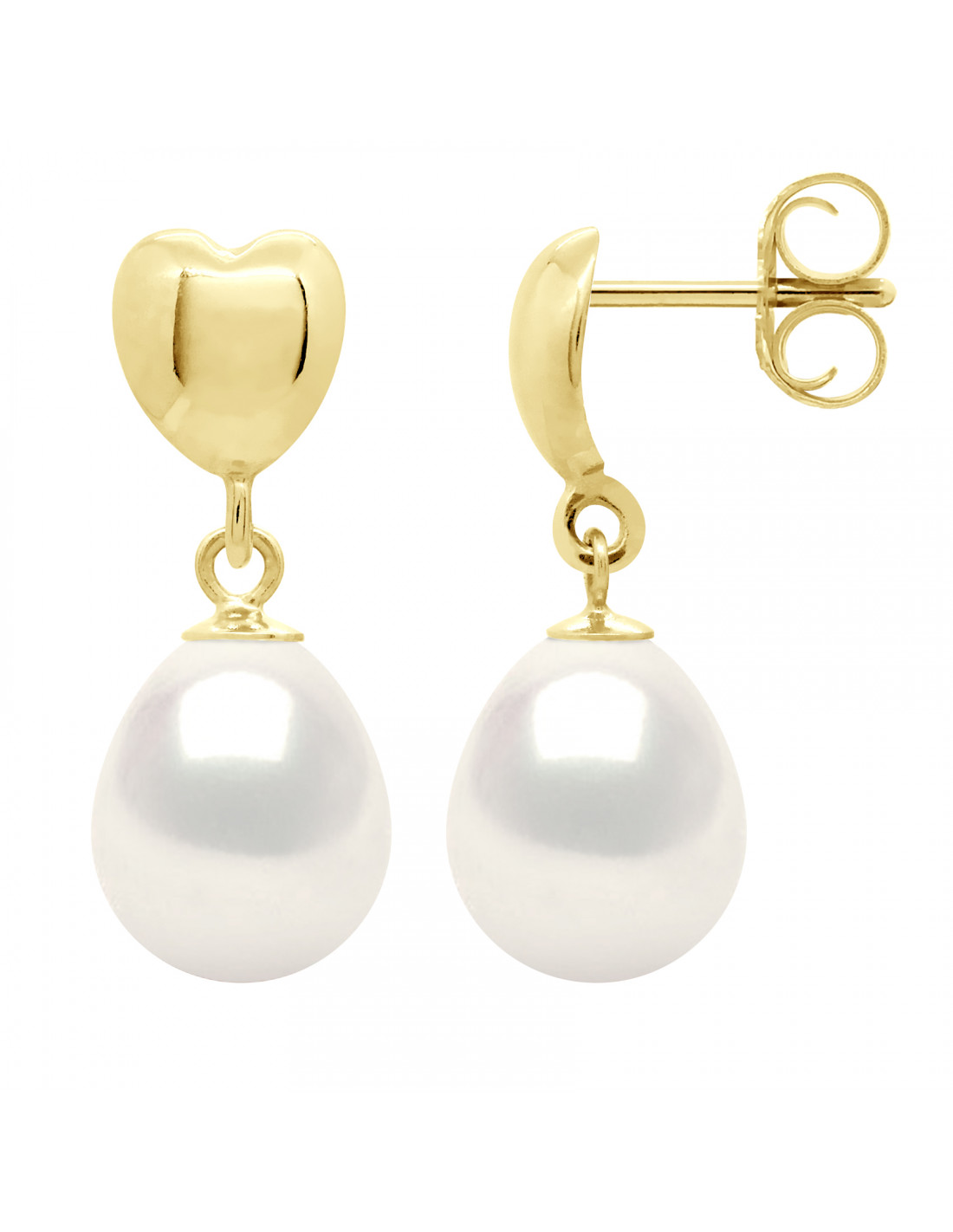 Boucles d'Oreilles Perle de Culture d'Eau Douce Poire 9-10 mm Or 375 Millièmes