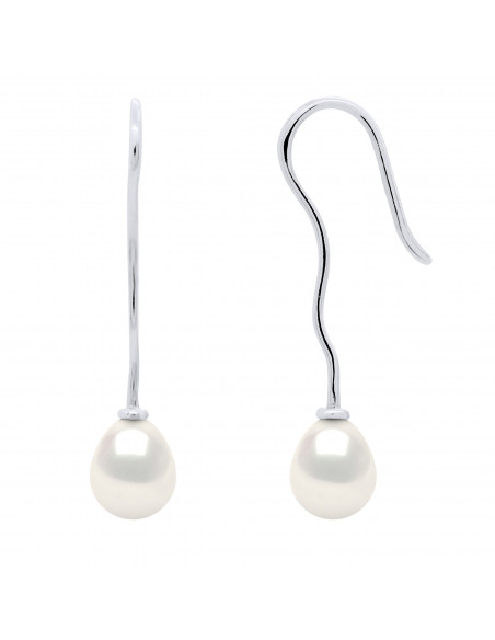 Boucles d'Oreilles Perle de Culture d'Eau Douce Poire Or 750 Millièmes Système Crochet