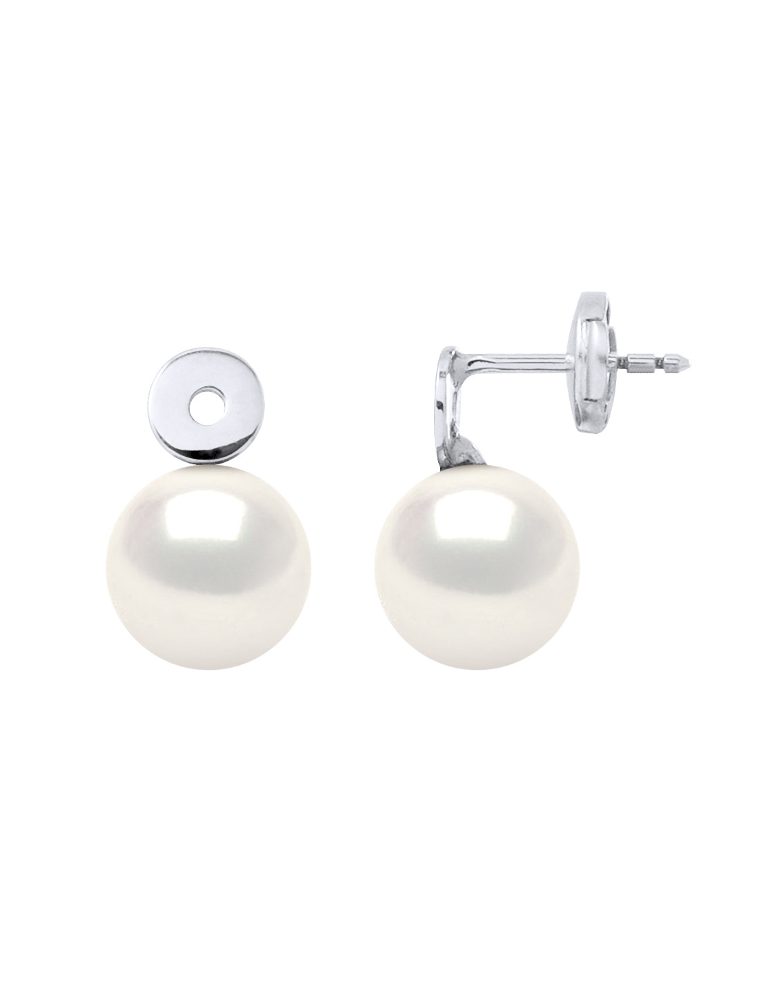 Boucles d'Oreilles Perle de Culture d'Eau Douce Ronde Or 750 Millièmes Système Sécurité