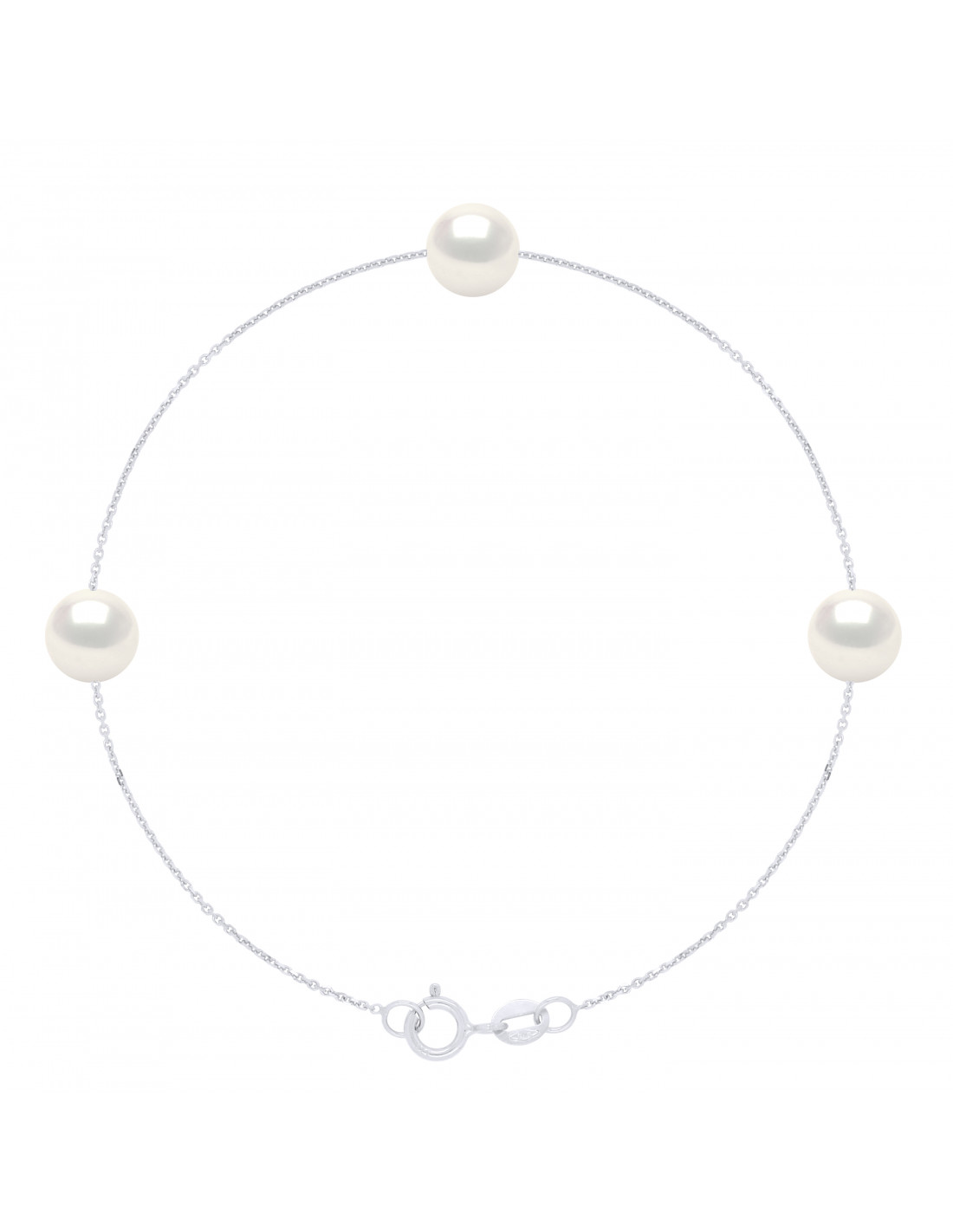 Bracelet 3 Perles de Culture d'Eau Douce Rondes 7-8 mm Chaîne Forçat Diamantée Petit Modèle Or 375 Millièmes