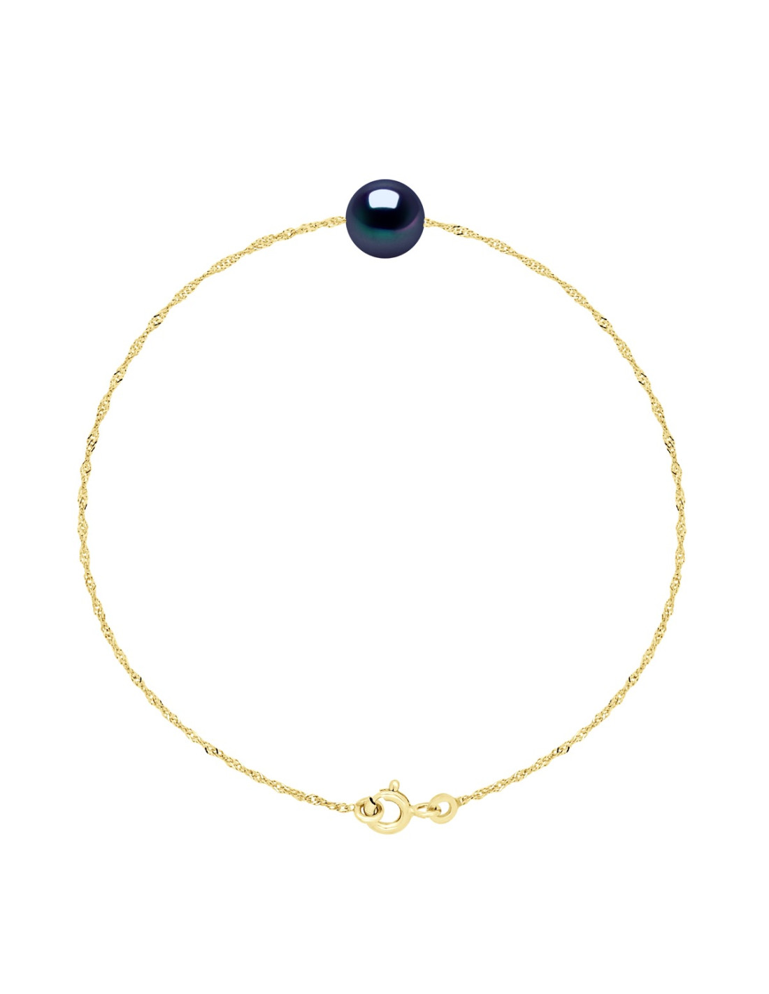 Bracelet Perle de Culture d'Eau Douce Ronde 8-9 mm Chaîne Singapour Torsadée Or 375 Millièmes