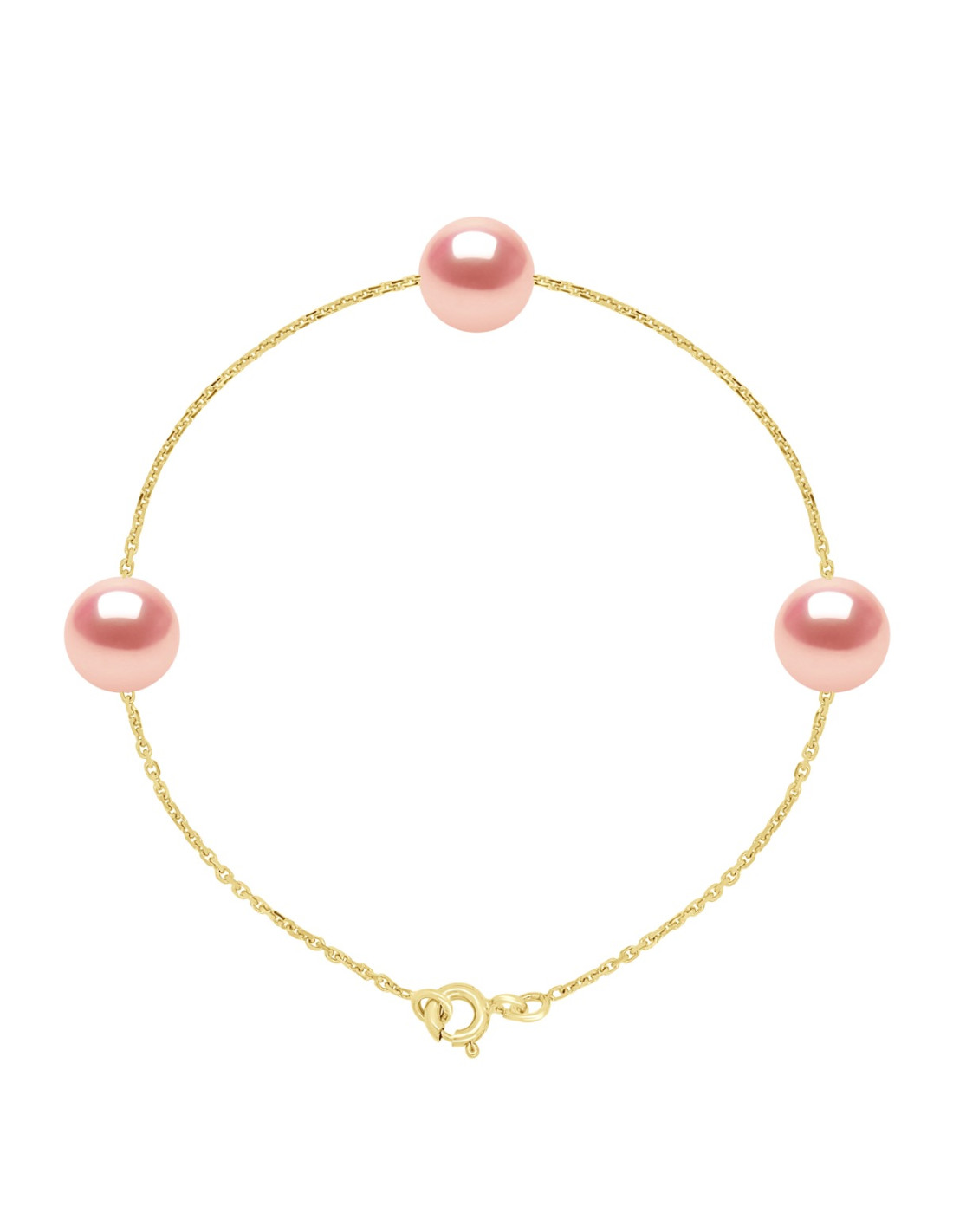 Bracelet 3 Perles de Culture d'Eau Douce Rondes 9-10 mm Chaîne Forçat Diamantée Grand Modèle Or 750 Millièmes