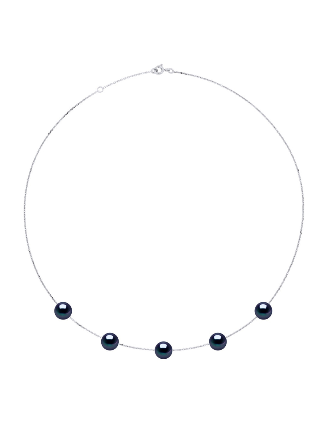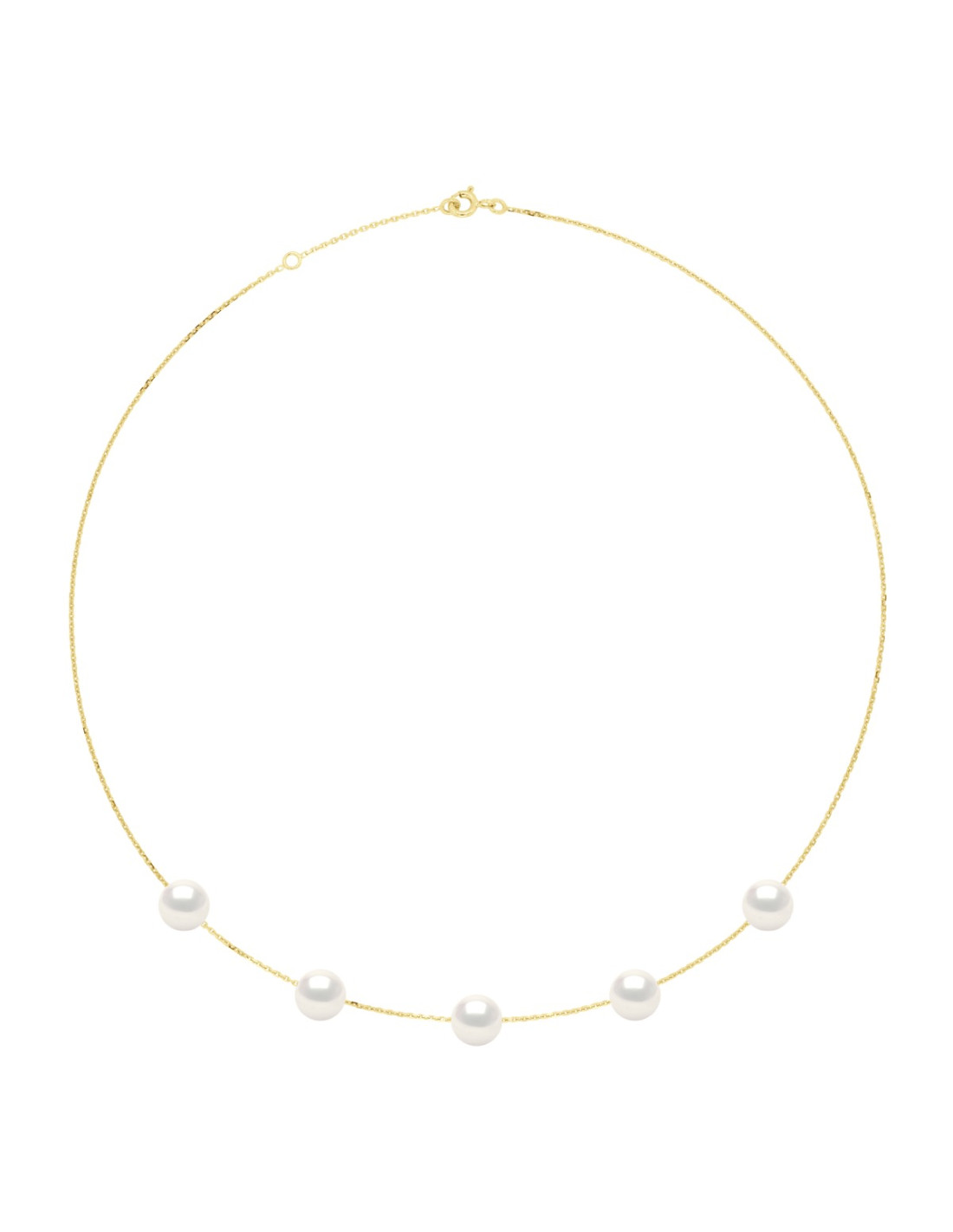 Collier 5 Perles de Culture d'Eau Douce Rondes - Chaîne Forçat Diamantée Grand Modèle Or 375 Millièmes