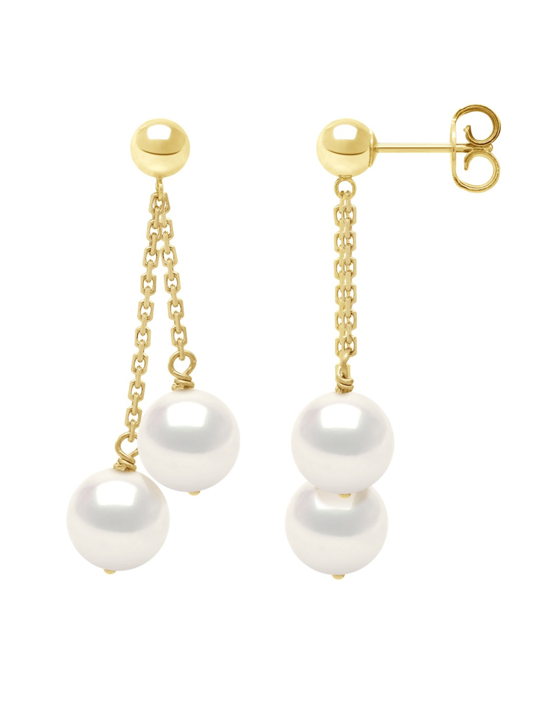 Boucles d'Oreilles Perle de Culture d'Eau Douce Ronde 7-8 mm Blanc Naturel Or 750 Millièmes Système Poussettes