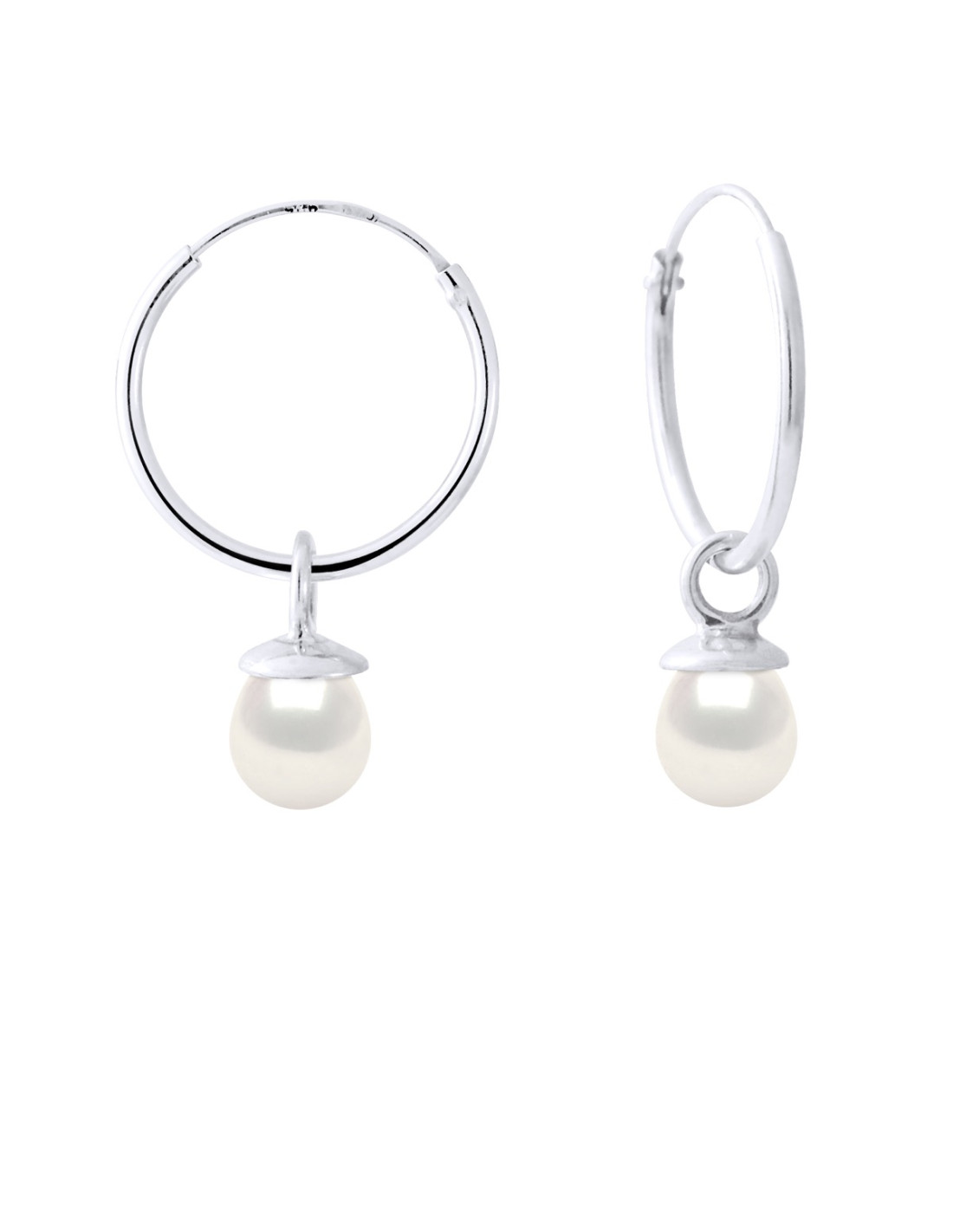 Boucles d'Oreilles Perle de Culture d'Eau Douce Poire Blanc Naturel Or 750 Millièmes Système Créoles