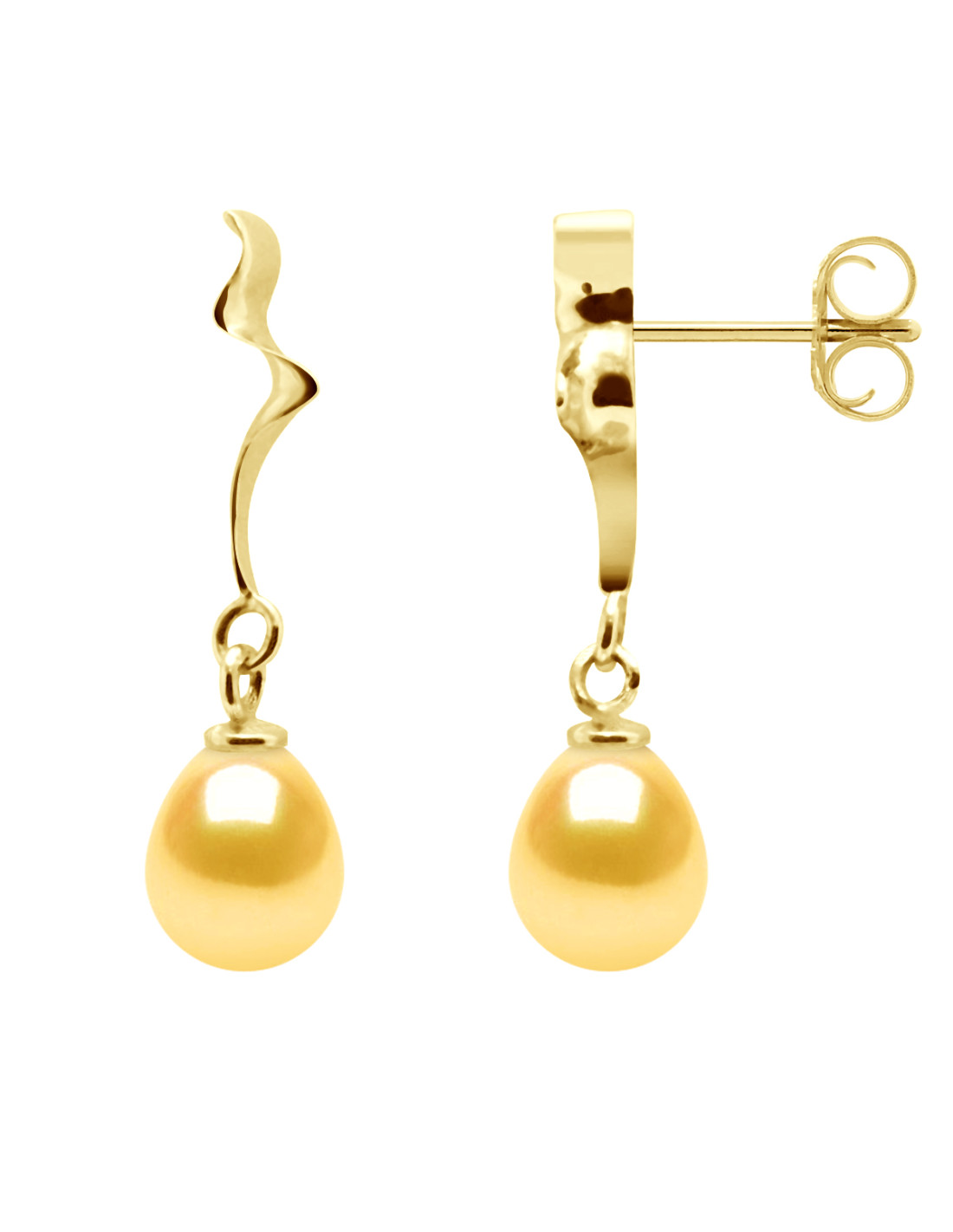 Boucles d'Oreilles Perle de Culture d'Eau Douce Poire 7-8 mm Or 750 Millièmes Système Poussettes