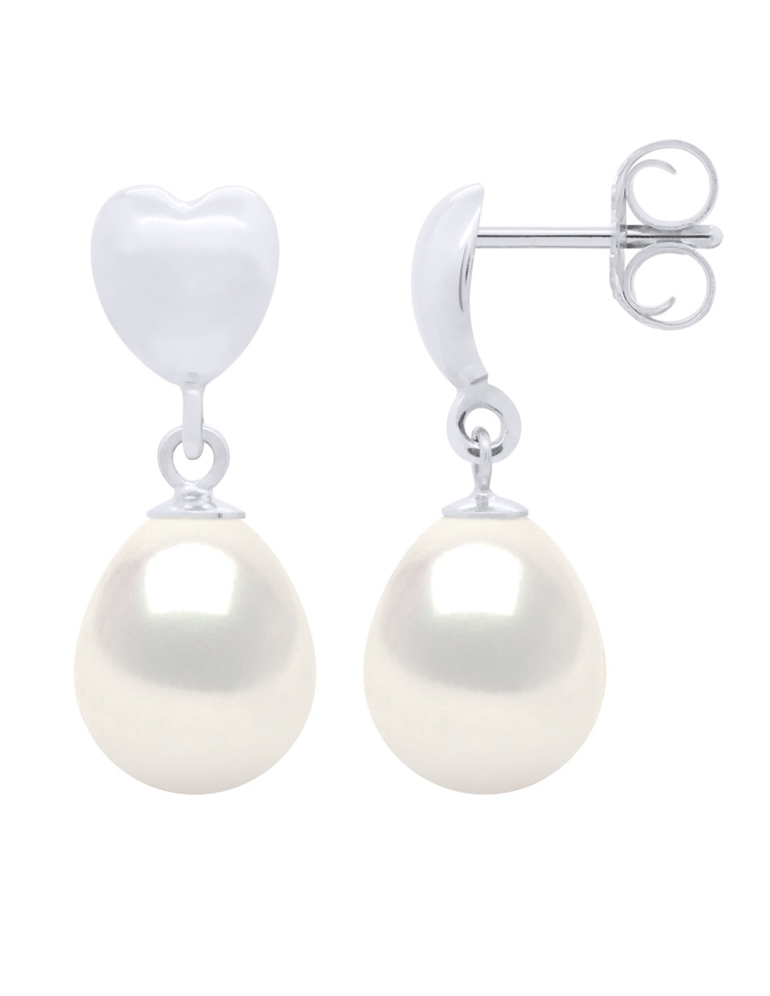 Boucles d'Oreilles Perle de Culture d'Eau Douce Poire 9-10 mm Or 750 Millièmes Système Poussettes