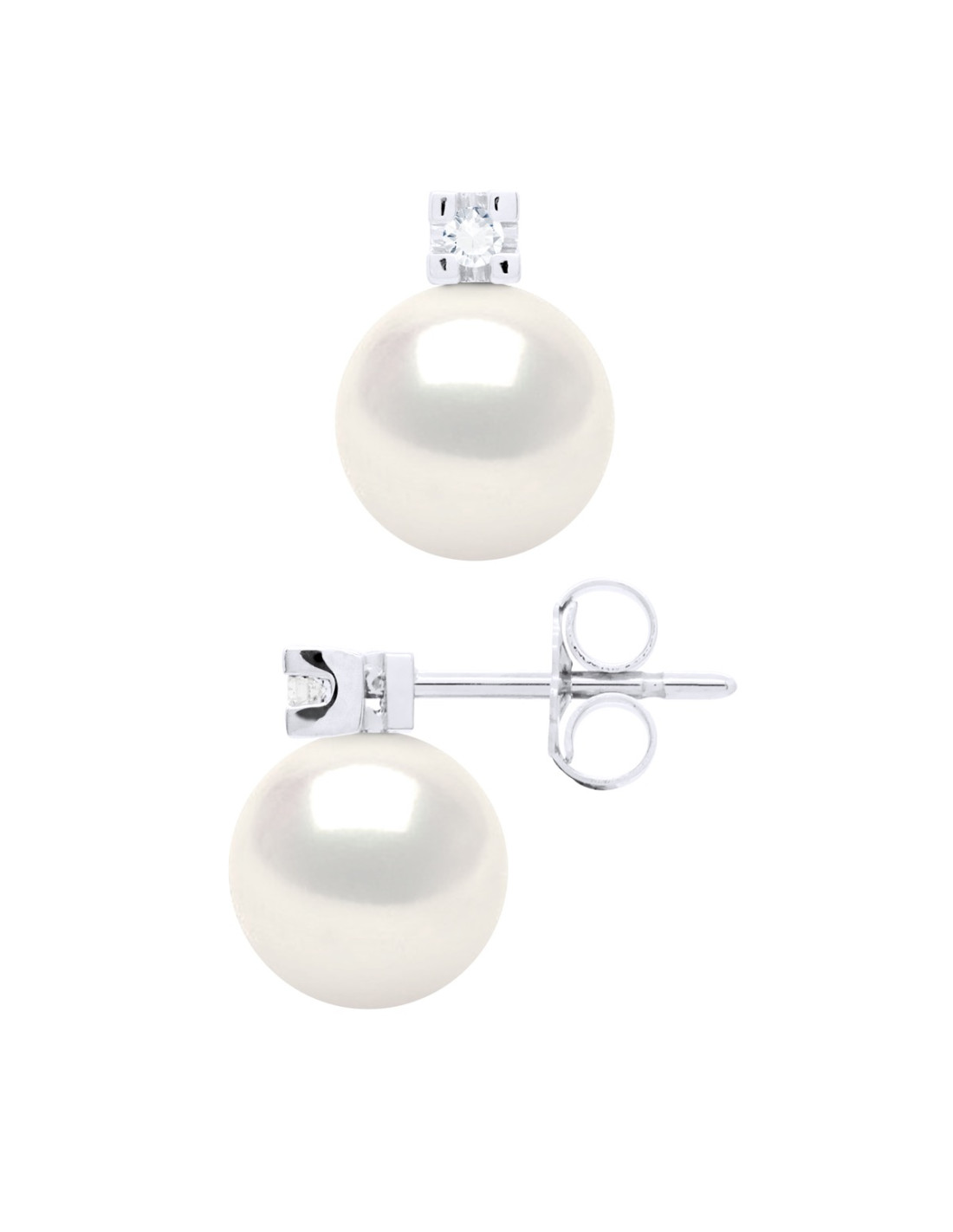 Boucles d'Oreilles Perle de Culture d'Eau Douce Ronde 8-9 mm Or 750 Millièmes Système Poussettes