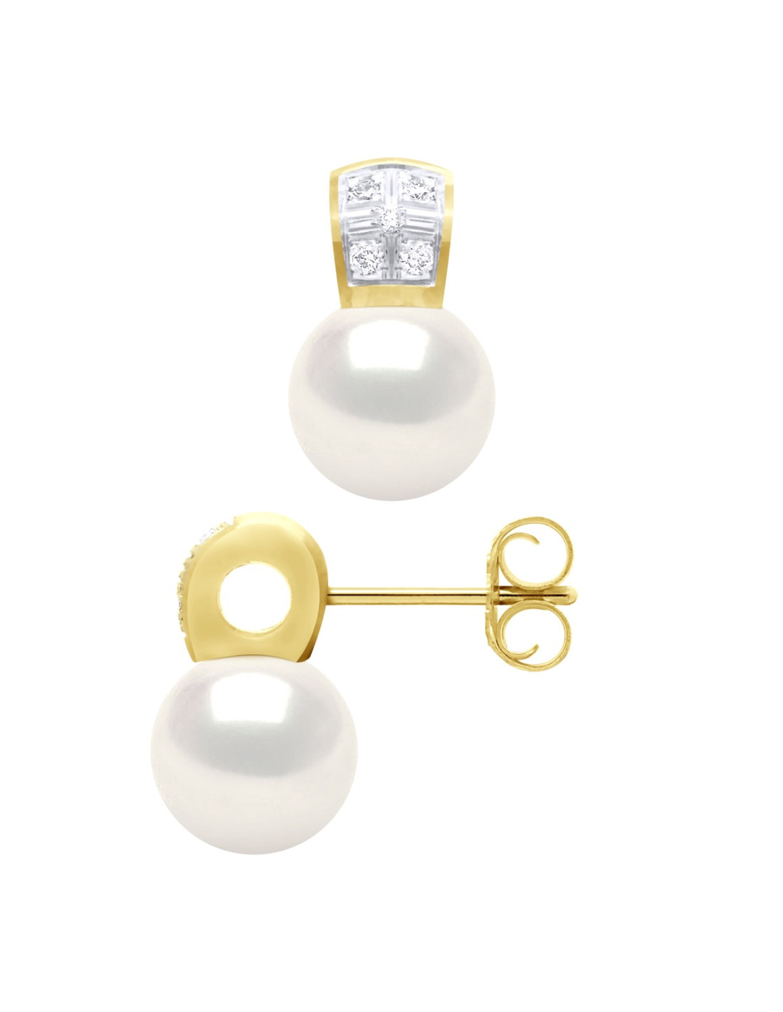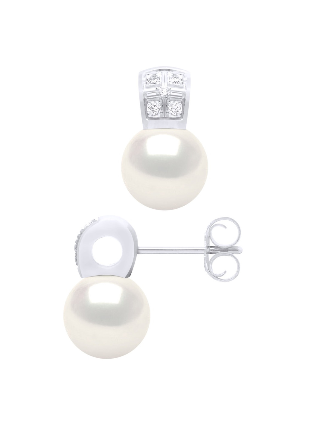 Boucles d'Oreilles Perle de Culture d'Eau Douce Ronde 9-10 mm - Or 750 Millièmes Système Poussettes