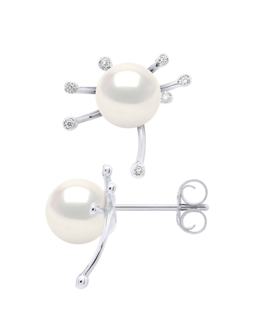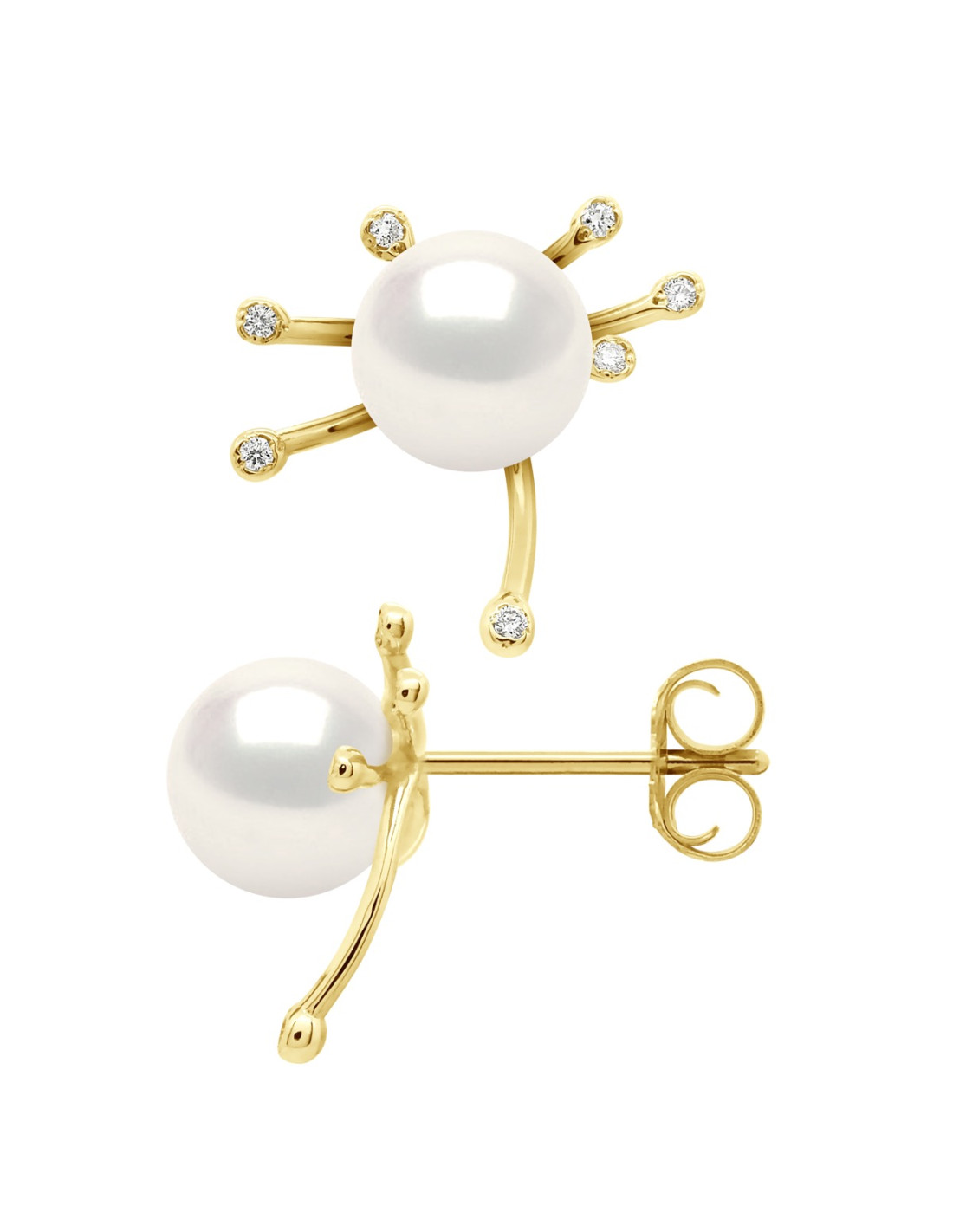 Boucles d'Oreilles Perle de Culture d'Eau Douce Ronde 9-10 mm  Or 750 Millièmes Système Poussettes