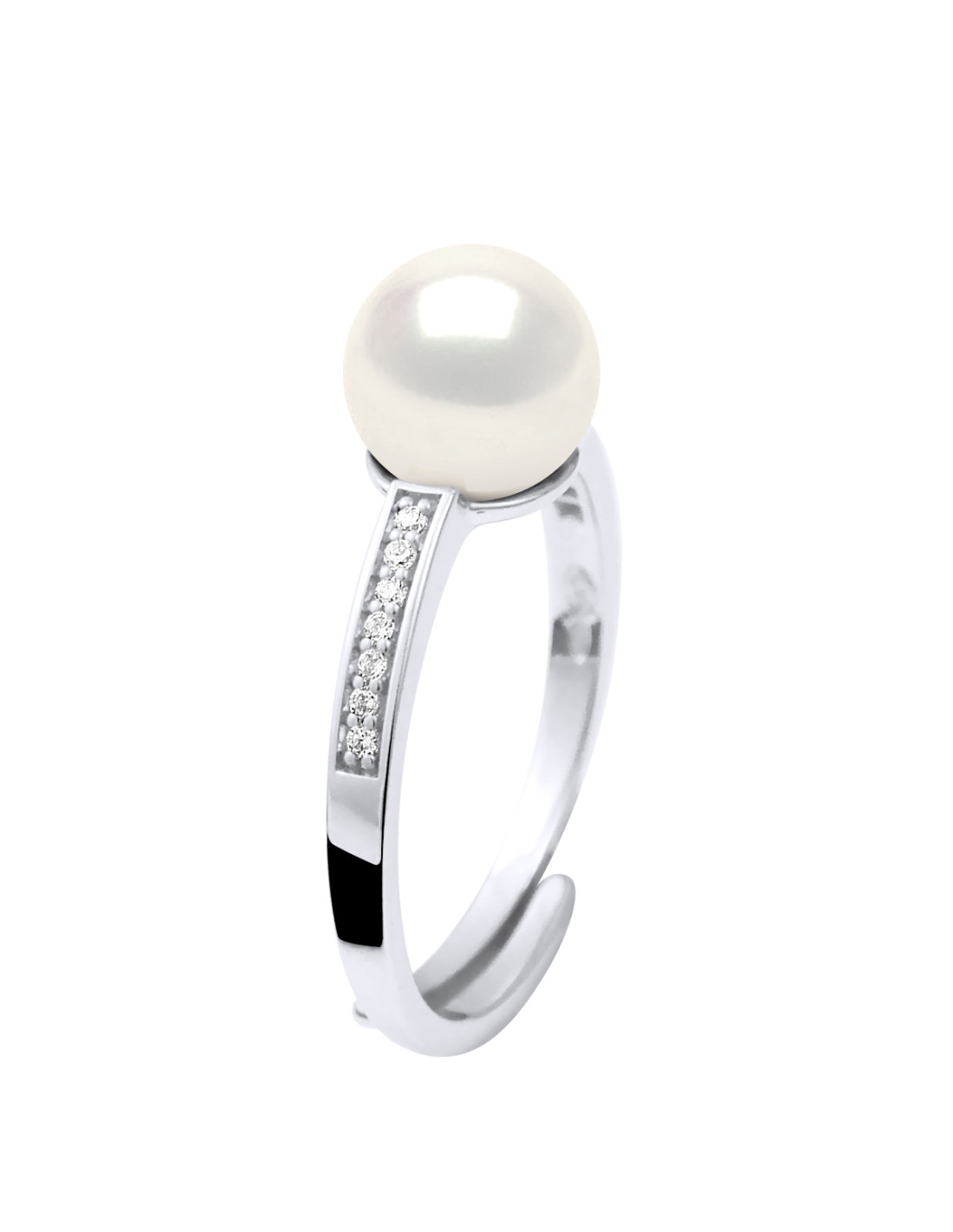 Bague Perle de Culture d'Eau Douce Bouton Argent 925 Millièmes - Ajustable de 48 à 62 Taille FR