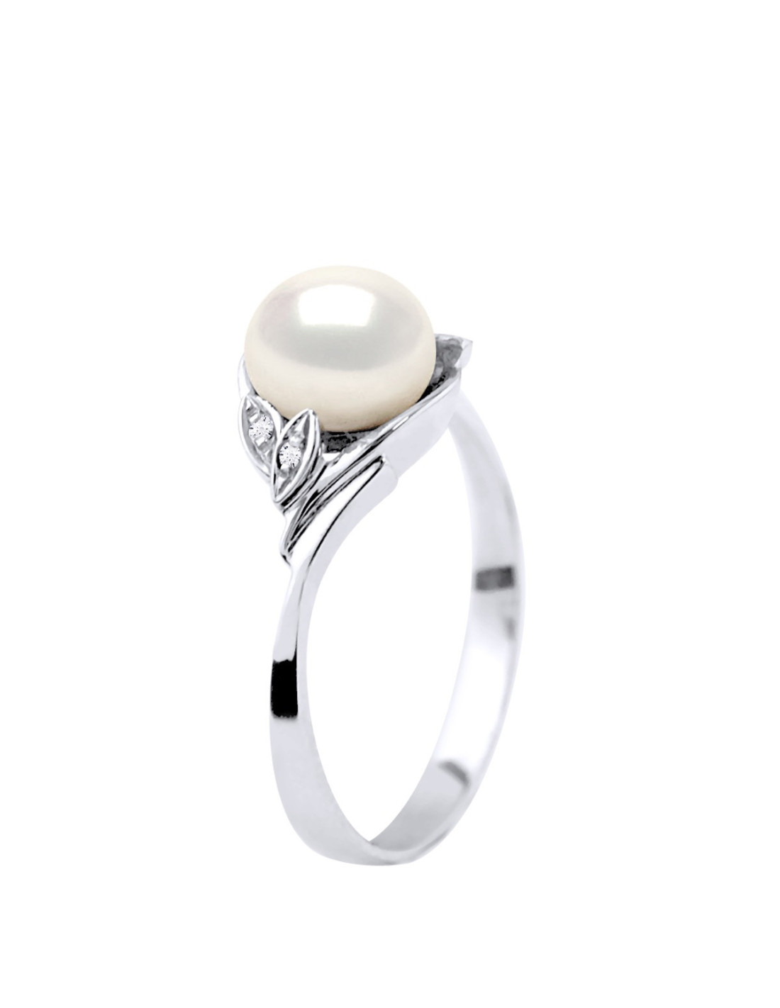 Bague Perles de Culture d'Eau Douce Bouton Or 750 Millièmes - Diamant HSI 0.020