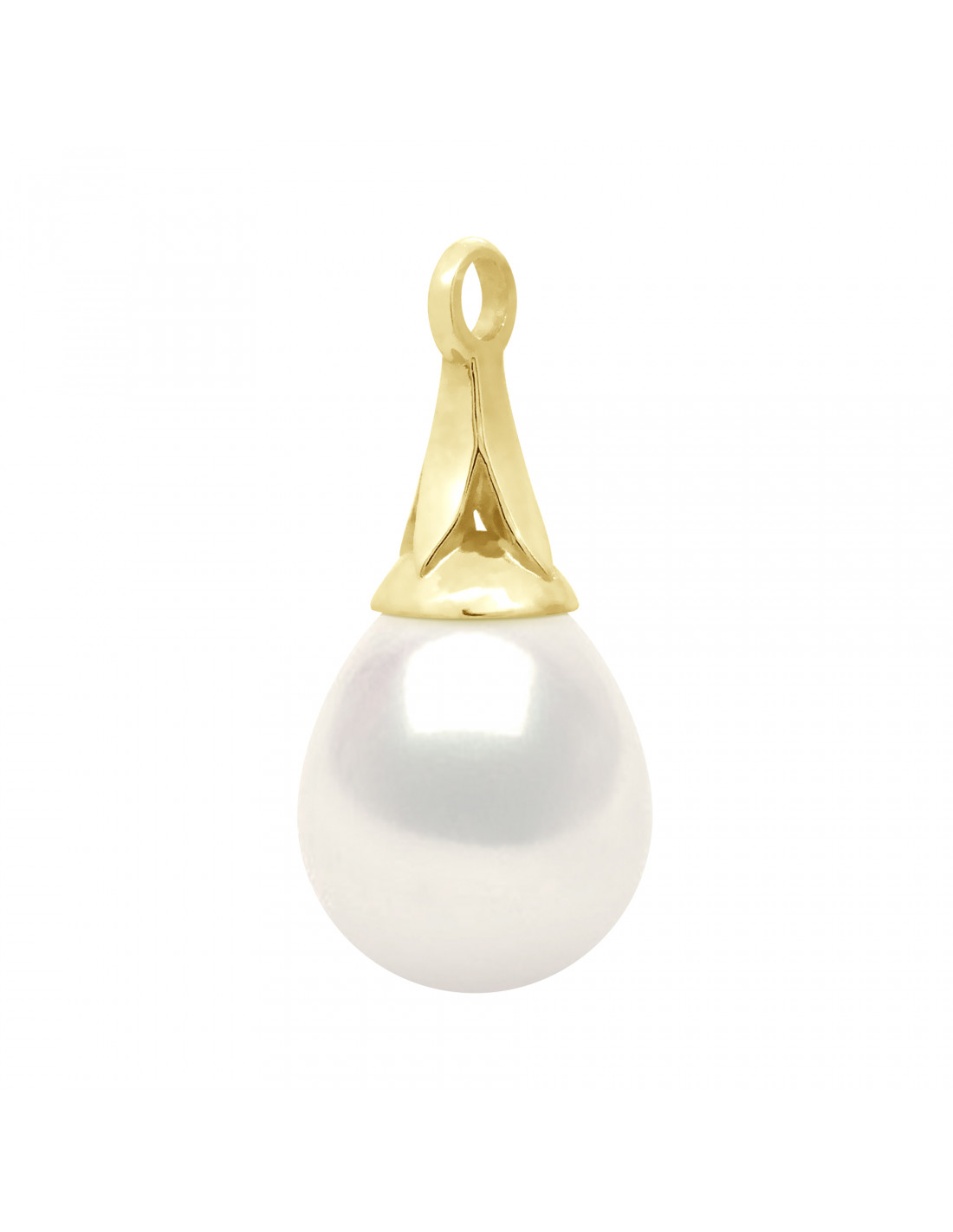 Pendentif Véritable Perle de Culture d'Eau Douce Poire 9-10 mm en Or 375 Millièmes