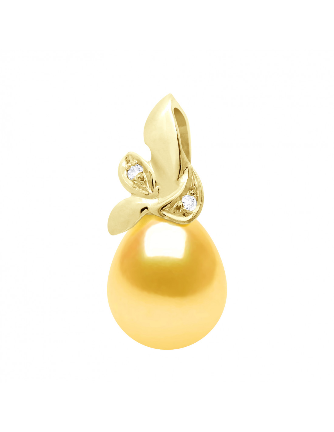 Pendentif Véritable Perle de Culture d'Eau Douce Poire 9-10 mm et Diamant 0,020 cts HSI en Or 375 Millièmes