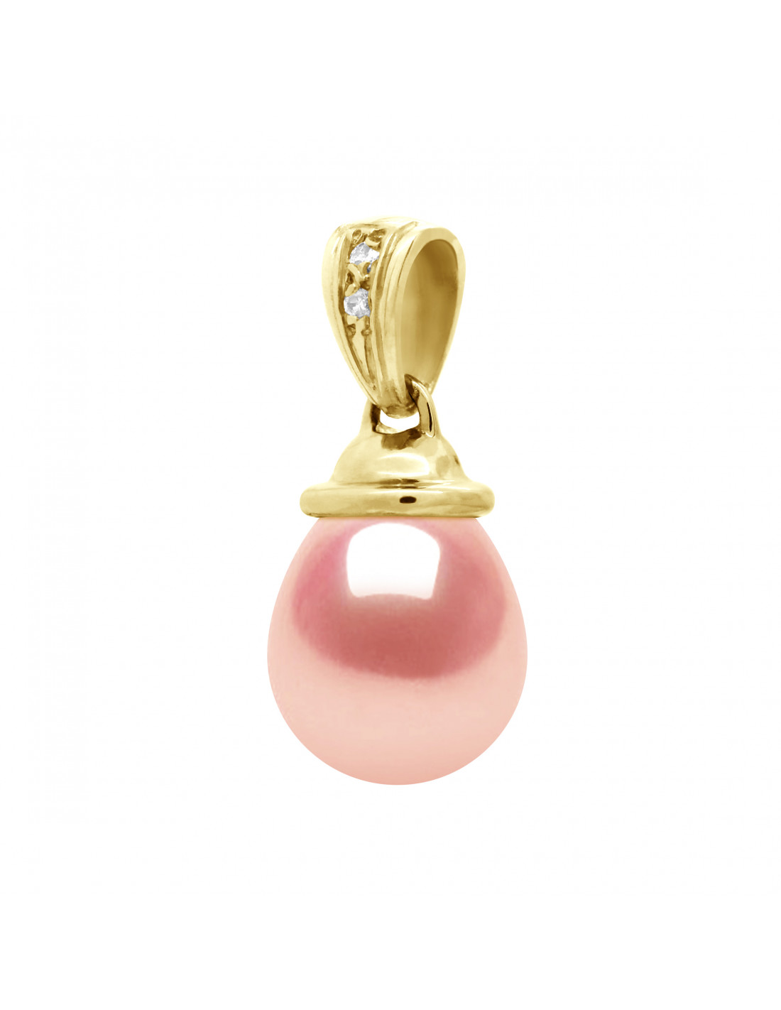 Pendentif Véritable Perle de Culture d'Eau Douce Poire 9-10 mm et Diamant 0,020 cts HSI en Or 375 Millièmes
