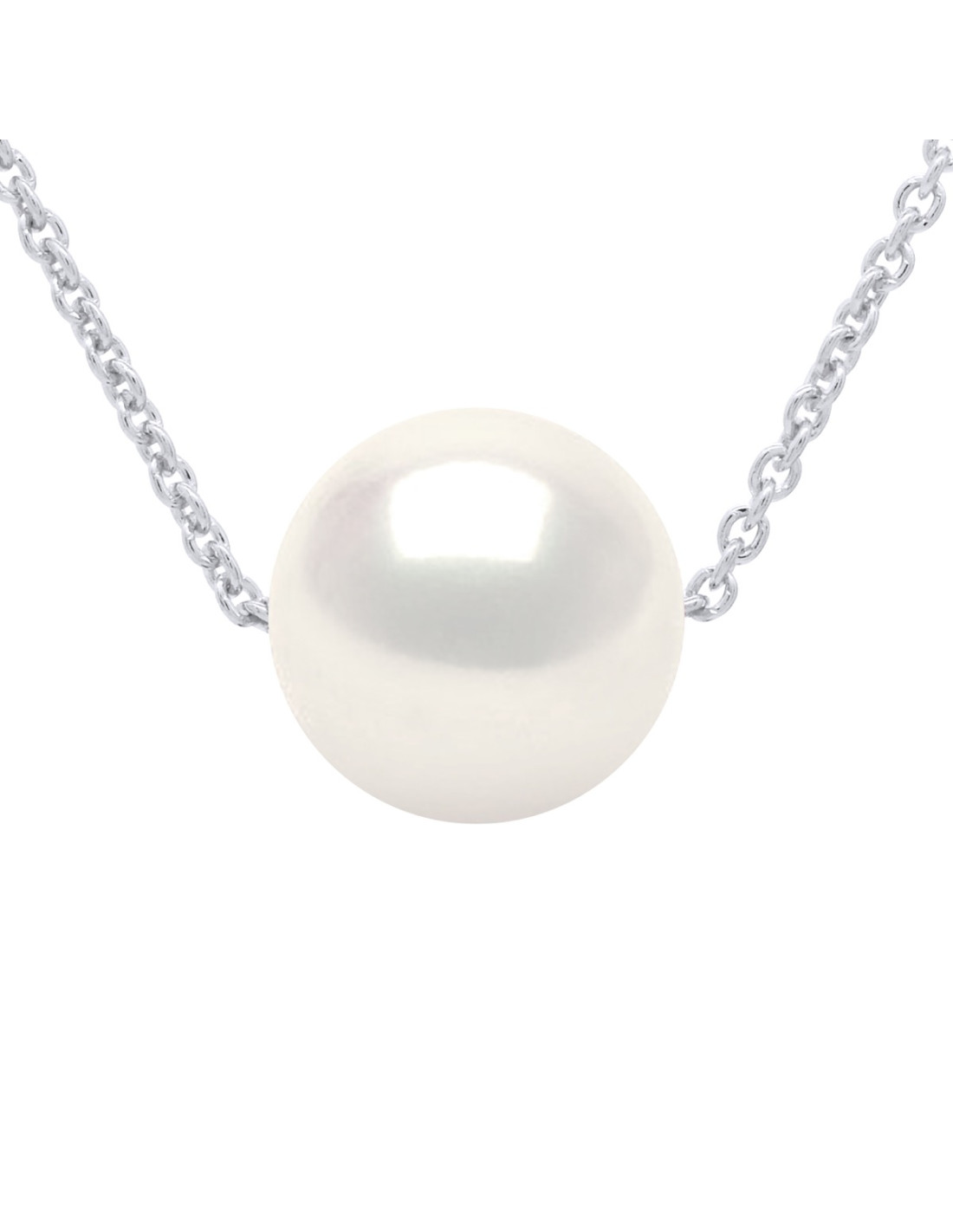 Collier Maille Forçat Argent Perle Eau Douce Traversante Ronde