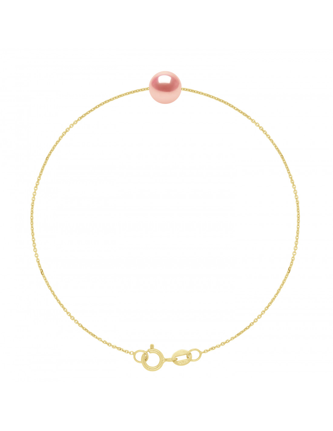 Bracelet Perle de Culture d'Eau Douce Ronde 7-8 mm Chaîne Forçat Diamantée Petit Modèle Or 750 Millièmes