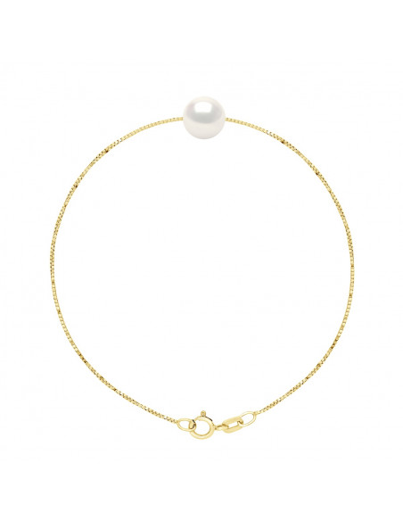 Bracelet Perle de Culture d'Eau Douce Ronde Chaîne Vénitienne Or 750 Millièmes