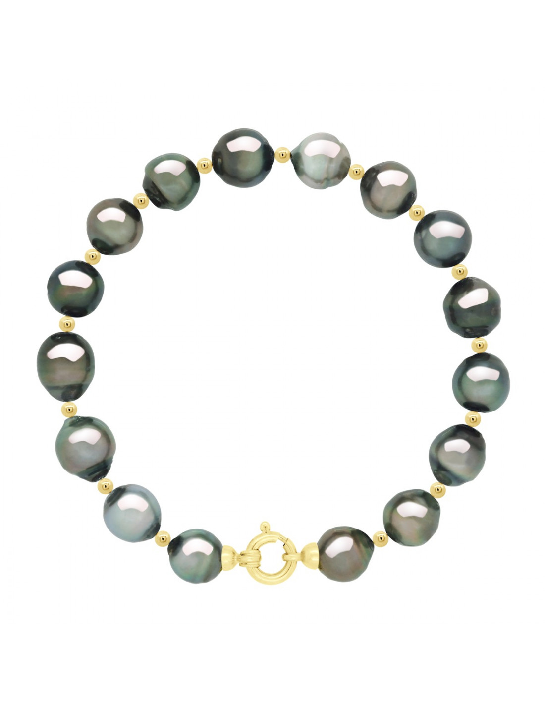Bracelet Perles de Culture De Tahiti Cerclées 8,5-9-10 mm - Longueur 18cm  Anneau Marin Petit Modèle Or 375 Millièmes